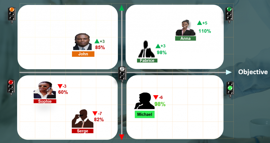 L’ID-TPD ou Tableau de bord de TALENTS permet d’analyser les performances individuelles de chaque membre de l’équipe afin d’identifier les TOP TALENTS, les talents futurs et les maillons faibles dans l’équipe et mettre en place des plans de développement et de rétention